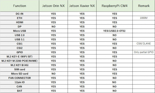 例えば、低消費電力と小型での運用を必要とする場合はCM4を、または高いAI処理能力や画像認識、機械学習の処理が求められる場合はJetson NX Orin XerviorまたはJetson Xavierなどの高性能モジュールを選択することで、同一のキャリアボード上で全く異なる性能特性を持つシステムを構築できます。これにより、システム設計者はハードウェア基盤の共通化を図るとともに、将来的なアップグレードや機能拡張も容易に行えるメリットを享受できます。