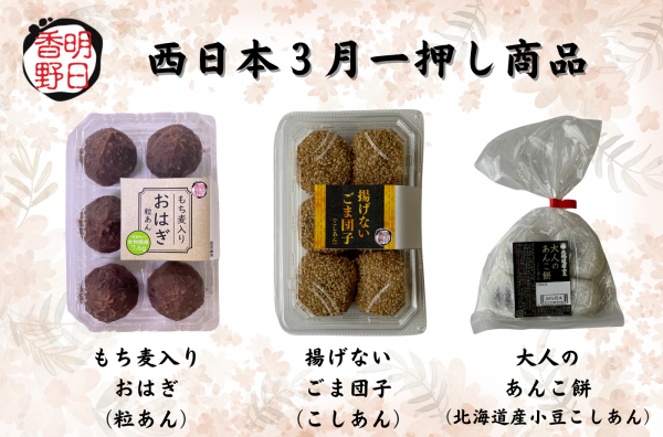 3月から東西地域で揃って販売を開始する「もち麦入りおはぎ」。