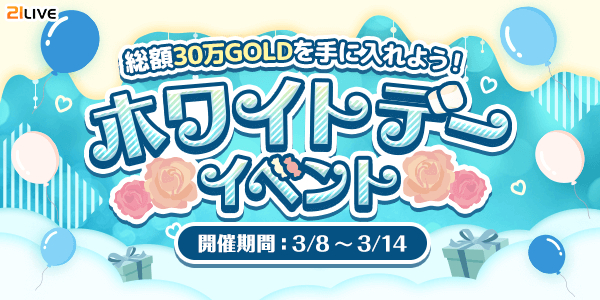 ホワイトデーギフトの獲得数ランキングで、1~21位入賞者に総額30万GOLDをプレゼント!