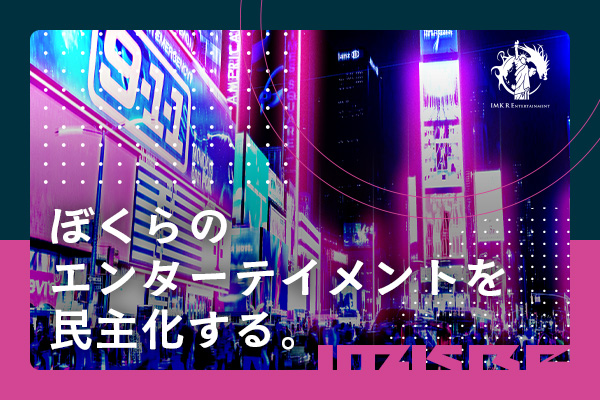 インターネット広告費がテレビ、ラジオ、新聞、雑誌のマスメディア広告費を超え、権力の崩壊と共に旧来型エンターテイメント産業は終焉へと向かい、新しいエンターテイメント産業が生まれるに相応しい舞台が整いました。私たちIMK R ENTERTAINMENTは、既成概念に囚われない新しいアプローチでエンターテイメント産業へ参入します。