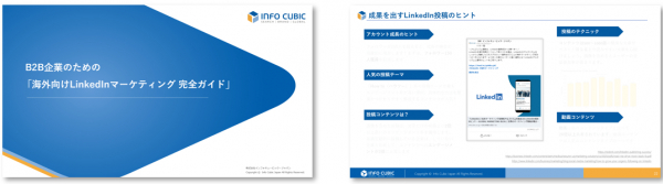 海外デジタルマーケティングの総合支援を行い1,300社以上の支援実績を持つ、株式会社インフォキュービック・ジャパン(本社:東京都新宿区、代表取締役 梅川万穂)は、令和7年3月7日(金)に 『 B2B企業のための海外向けLinkedInマーケティング完全ガイド』 と題した、無料のホワイトペーパーを公開しました。