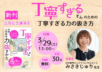 ●新刊『丁寧すぎるさんのための仕事・人間関係力の抜きかた』出版記念オンライン講演会を開催!