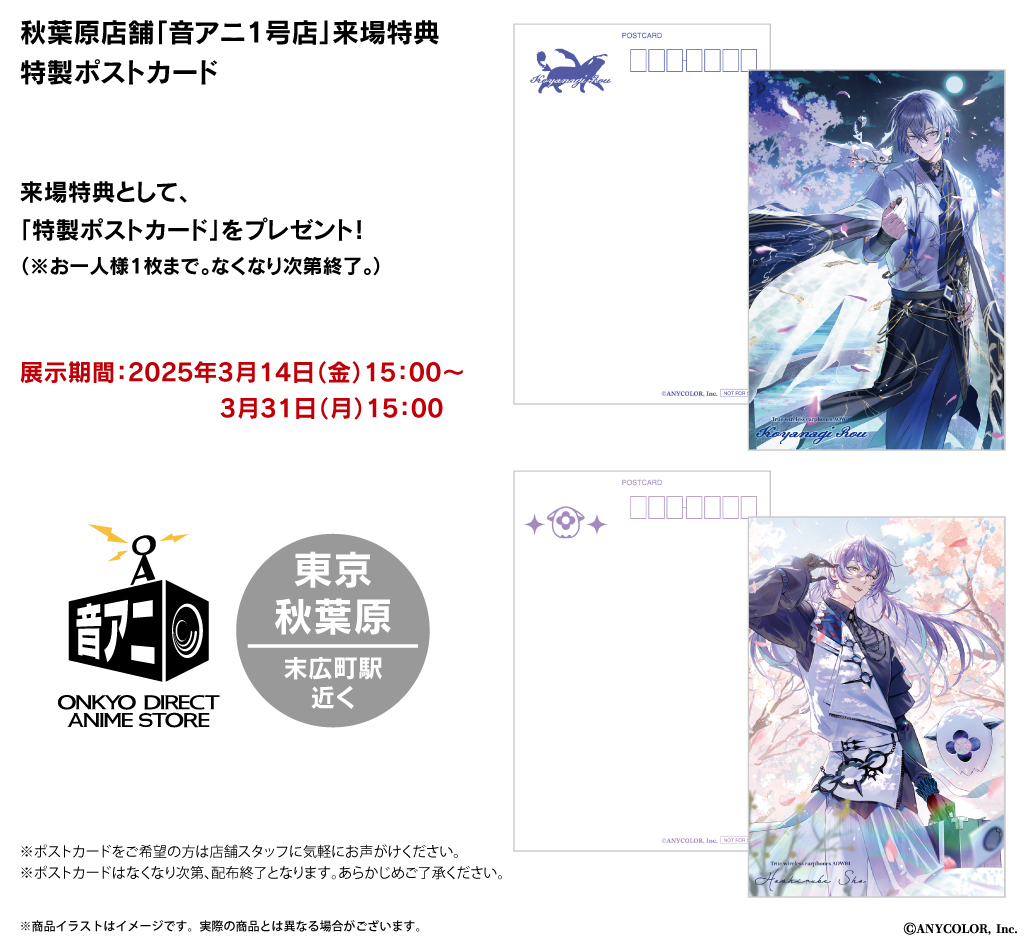 また3月14日(金)15:00~3月16日(日)20:00は混雑を想定し、ご入店整理券の配布をさせていただきます。なお整理券配布の情報、更新につきましては適宜「音アニ」公式X(@ONKYO_ANIME)にてお知らせいたします。