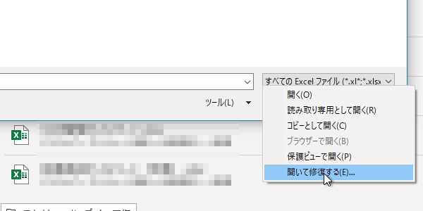 方法1:Excelの「開いて修復」機能を使う