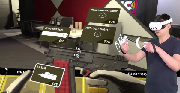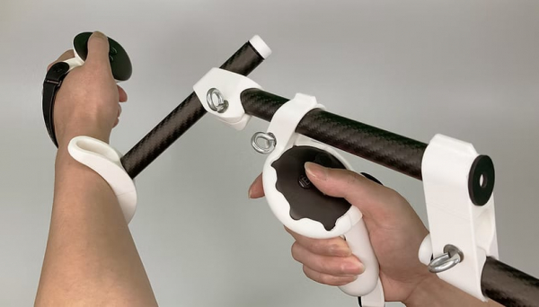 VR用ガンシューティングゲームは、現実さながらの空間に身を置く臨場感の高さと、銃器の扱いのリアルさから人気の高いジャンルです。一方で、VRゲームでは、空間上に2つのコントローラーを配置しなくてはならず、思った通りに狙えない、肩に力が入って疲れる、という問題がありました。