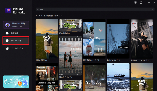 step1:ソフトを起動して「テンプレート」にアクセスします。