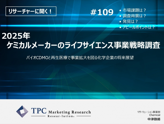 この程、TPCマーケティングリサーチ株式会社(本社=大阪市西区、代表取締役社長=松本竜馬)は、『2025年 ケミカルメーカーのライフサイエンス事業戦略調査』について、弊社リサーチャーの中津啓揚のインタビュー記事を2025年3月11日に公開したことをお知らせいたします。