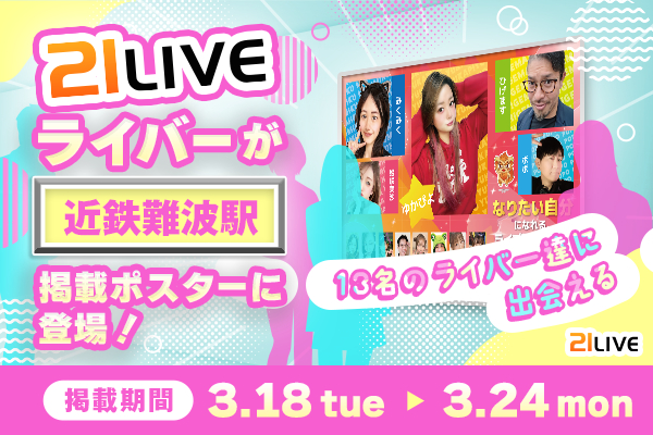 3月18日(火)より1週間限定で、大阪難波駅構内で21LIVEのポスターを掲示します。