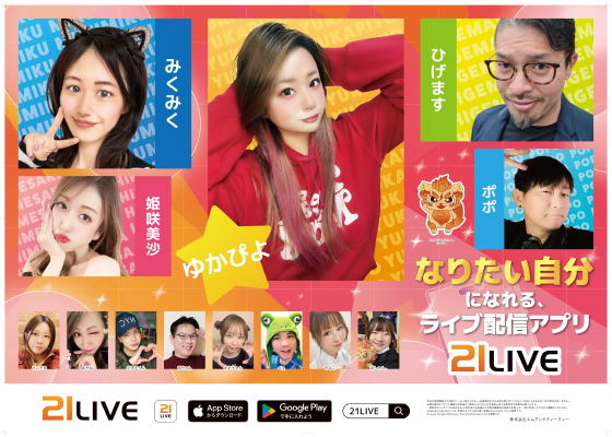 ポスターに掲載しているライバーの配信は、21LIVEのアプリ・サイトでご覧いただけます。