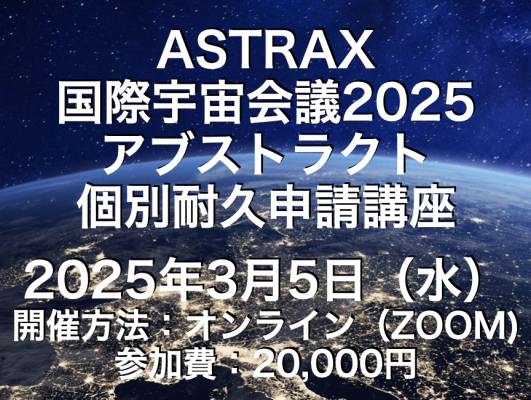 講座名:ASTRAX国際宇宙会議2025アブストラクト個別耐久申請講座(申請講座としては4回目)