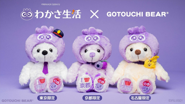 観光土産品の企画・製造・卸売を行う、ANAグループの株式会社FUJISEY(本社:山梨県甲府市、代表取締役社長:小口浩子)は、全国各地の観光地などで販売している「ご当地ベア」シリーズから、「わかさ生活」公式キャラクター「ブルブルくん」とコラボした『ご当地ベア ブルブルくん(わかさ生活)』3種(東京、京都、名古屋)を、わかさ生活直営店や東京駅のポップアップストアで3月14日(金)より順次販売開始します。