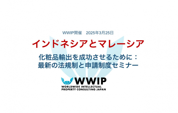 【セミナー開催のご案内】株式会社ワールドワイド・アイピー・コンサルティングジャパン (以下「WWIP」) は、2025年3月25日(火)14:00~16:00に、「インドネシアとマレーシア化粧品輸出を成功させるために:最新の法規制と申請制度セミナー」を開催いたします。