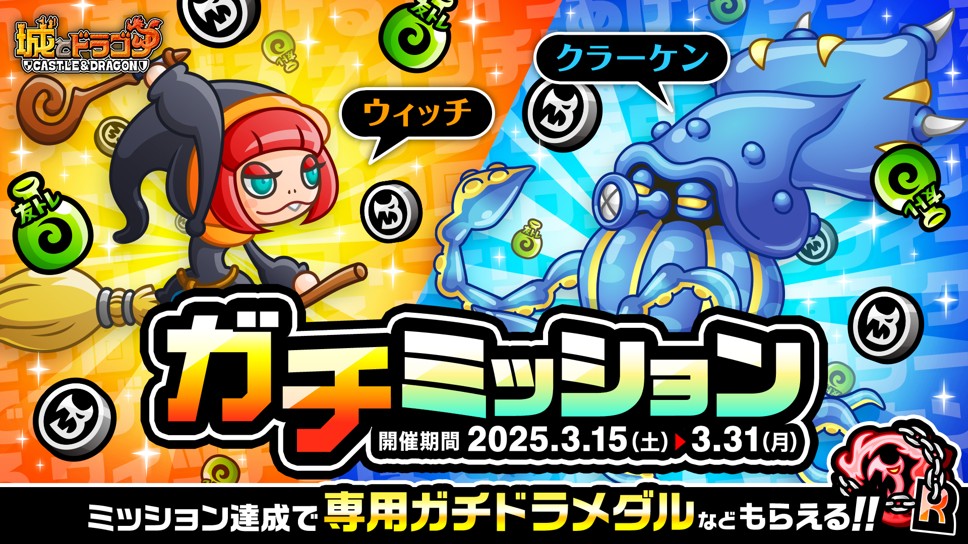 株式会社アソビズム(本社:東京都千代田区、代表取締役:大手智之)は、App Store・Google Playにて好評配信中の『城とドラゴン』で、2025年3月15日(土)に、ウィッチとクラーケンを対象とした「ガチミッション」などを実施いたします。