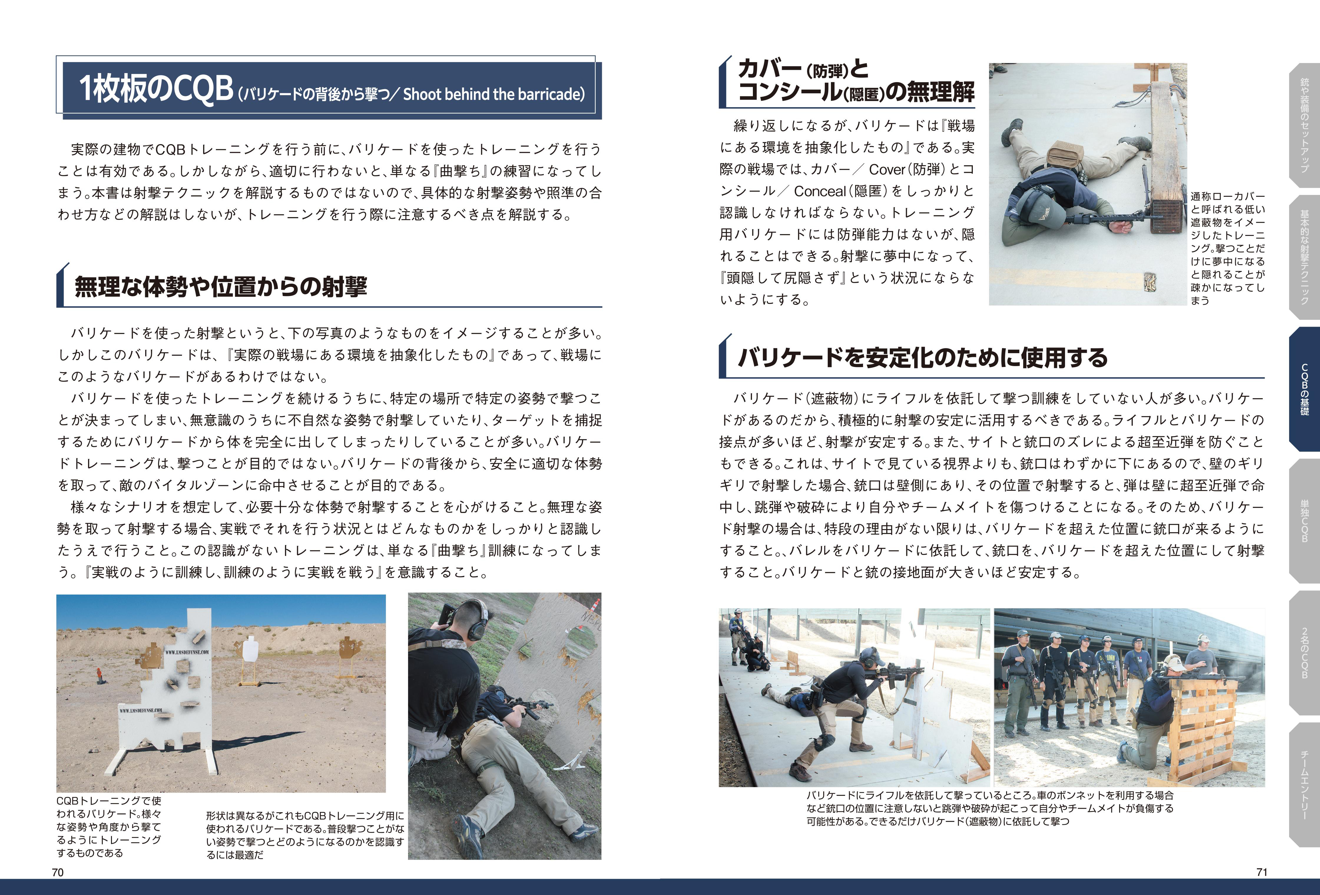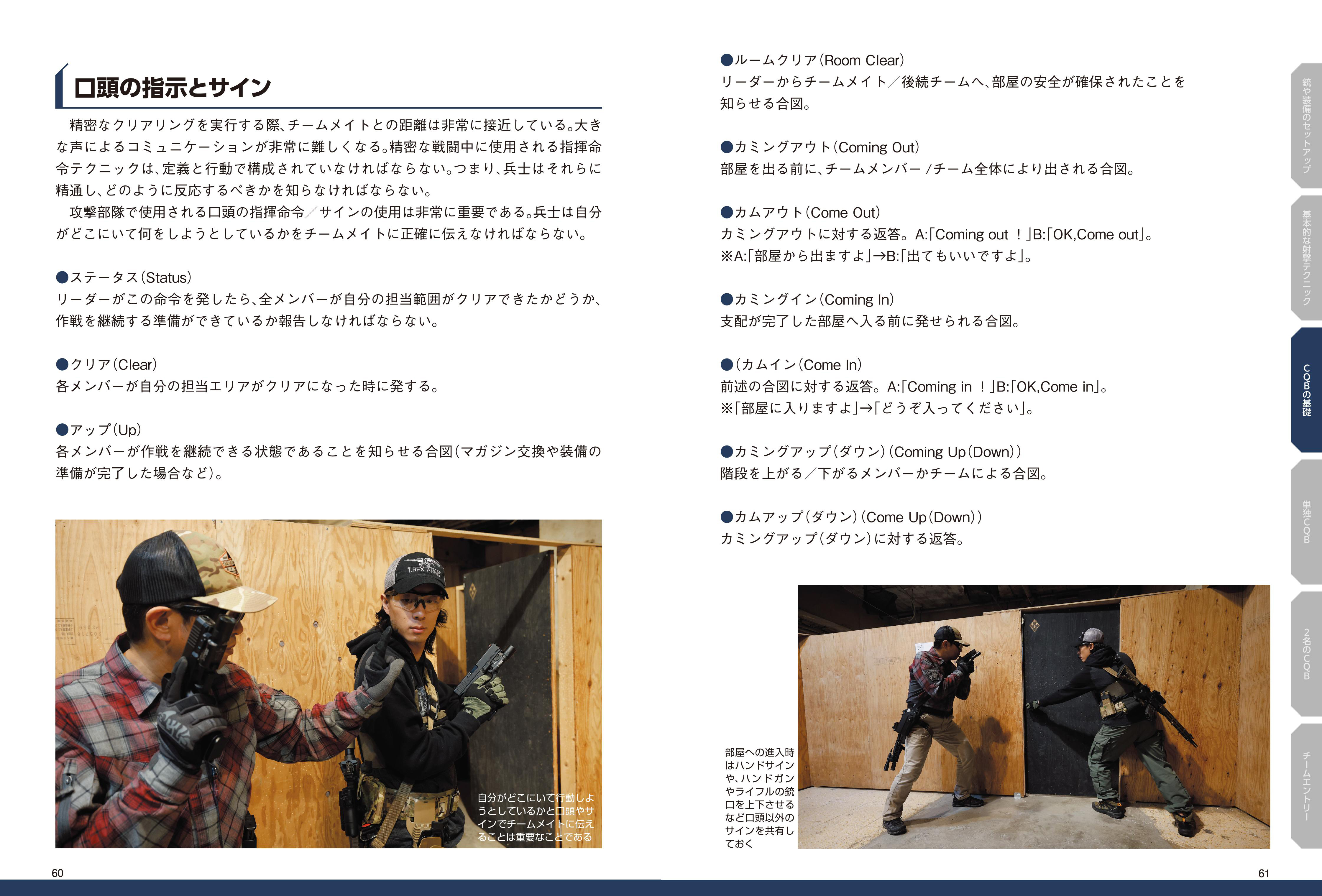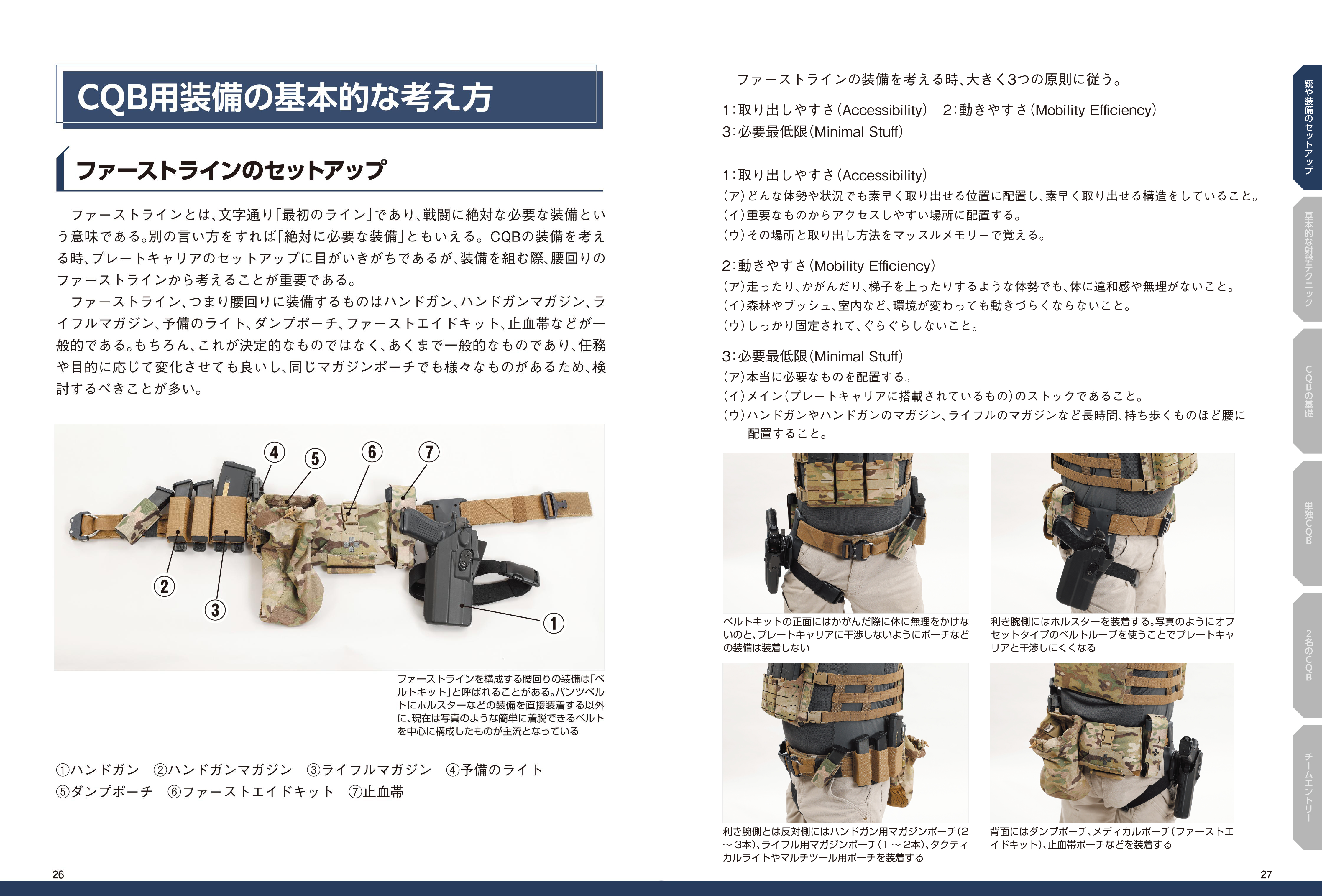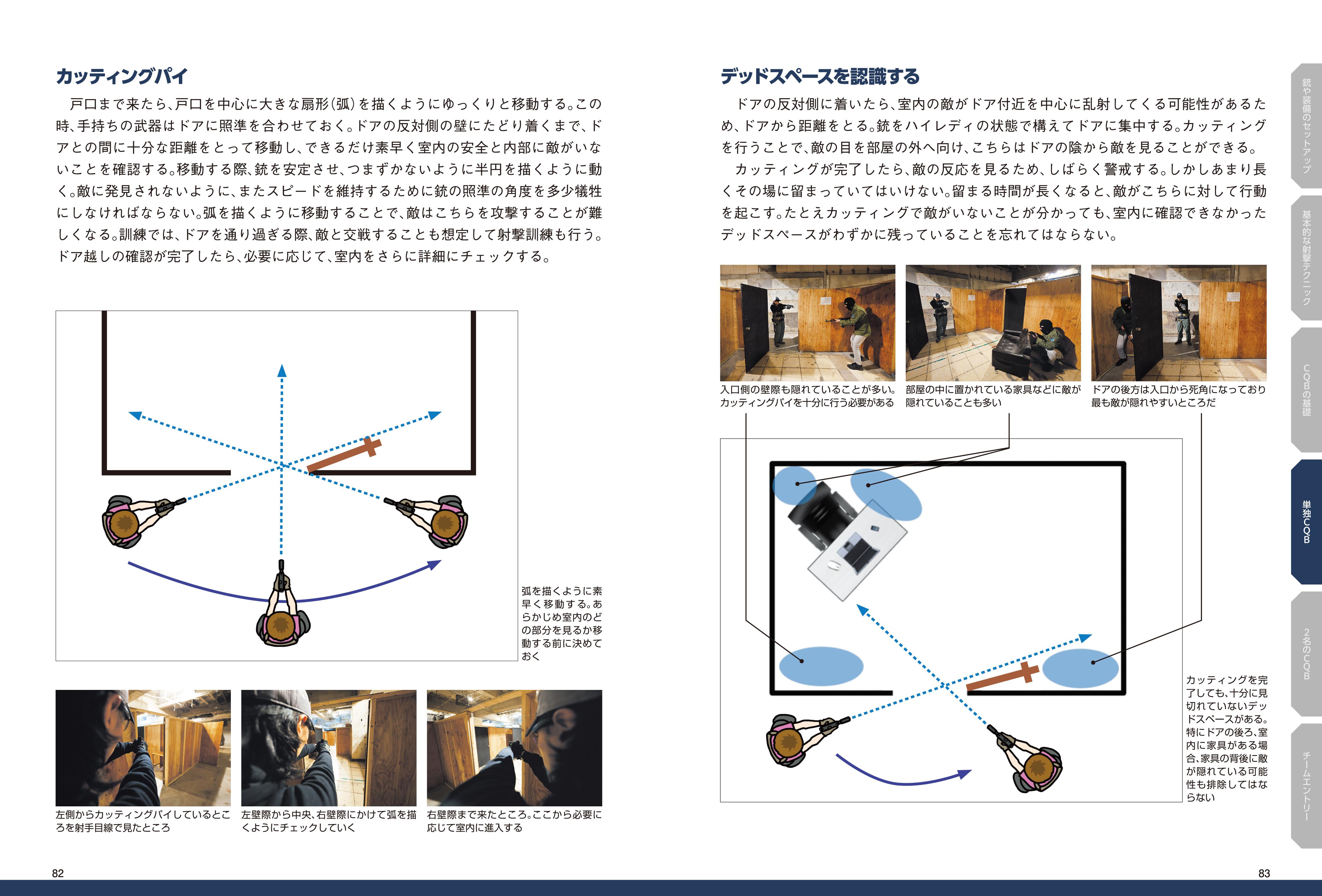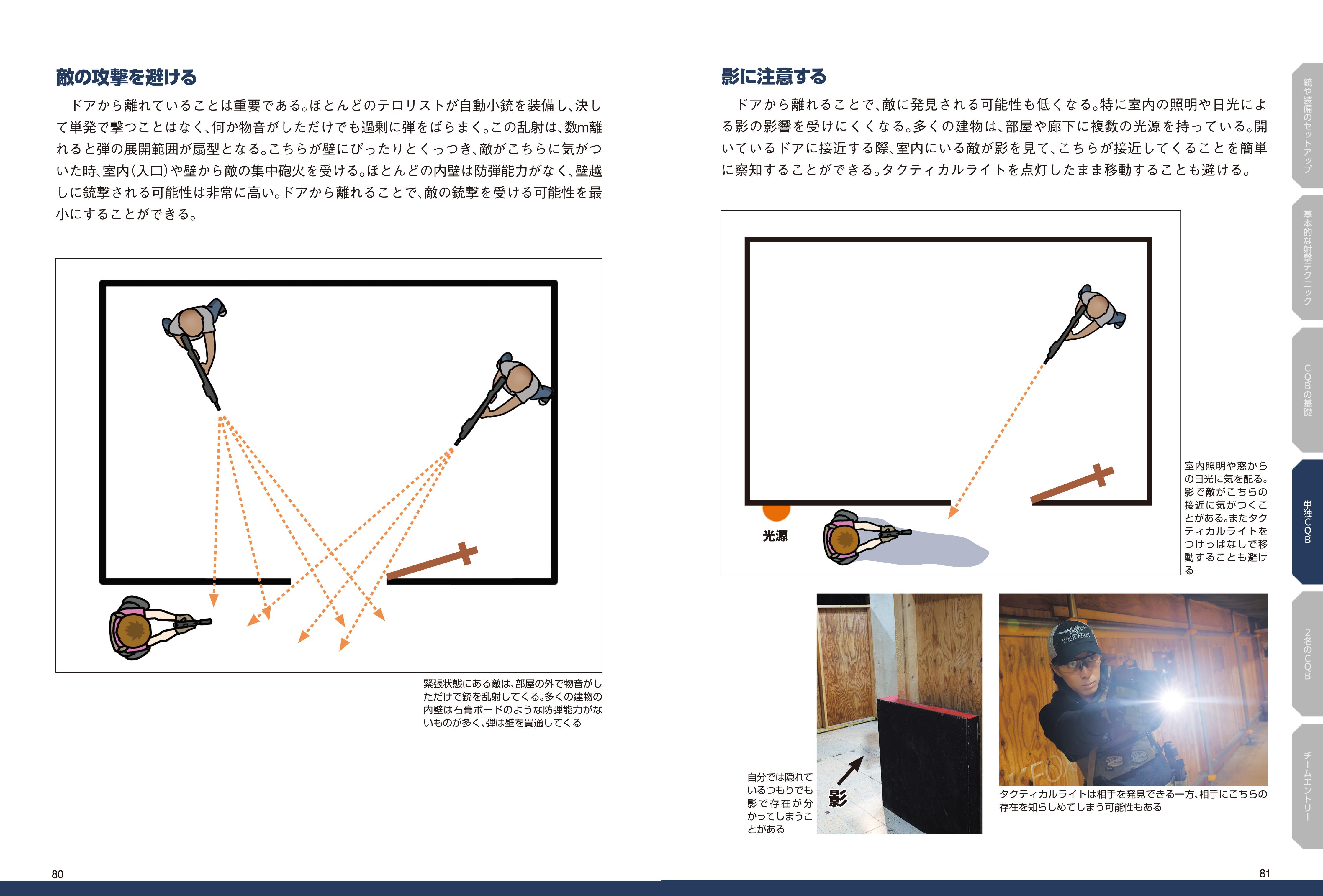 何を装備し、自分をどこに置き、どう動き、何を狙うか。CQB戦術の基礎知識からさまざまな状況の戦闘法までが、この一冊で学べます。