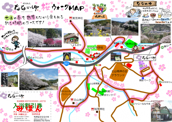 株式会社鳴神温泉(佐賀県唐津市 代表取締役 鬼塚 晃)が佐賀県唐津市七山地区で運営する日帰り温泉施設「ななのゆ」は、入浴割引クーポン付き「ななのゆ桜ウォークMAP」を3月20日から配布スタートします。
