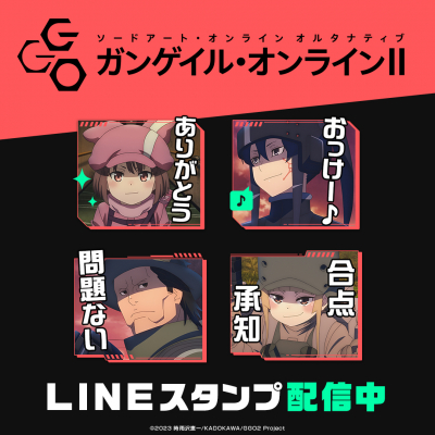TVアニメ「ソードアート・オンライン オルタナティブ ガンゲイル・オンラインII」のLINEスタンプがインクルーズより配信開始!是非、LINEスタンプでもTVアニメ「ソードアート・オンライン オルタナティブ ガンゲイル・オンラインII」の世界観をお楽しみください。