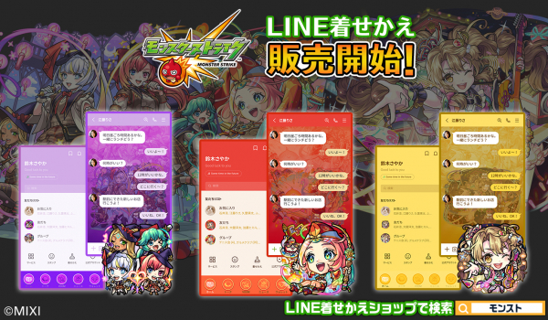 株式会社インクルーズ(東京都渋谷区、代表取締役社長 山﨑 健司)は、LINEヤフー株式会社が運営するコミュニケーションアプリ「LINE」内の着せかえショップにて、株式会社MIXI(東京都渋谷区、代表取締役社長 木村 弘毅)が提供するスマートフォンアプリ「モンスターストライク」(以下、モンスト)のLINE着せかえ3点を2025年3月18日(火)に一斉配信致しました。