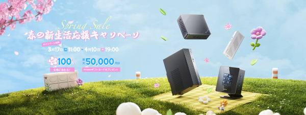 MICRO COMPUTER (HK)TECH LIMITEDが運営するミニPCメーカーのMinisforum(ミニスフォーラム)は、Minisforum日本公式ストア(https://www.minisforum.jp/)に、春を満喫していただくためのキャンペーン「春のいい生活応援キャンペーン(https://bit.ly/3DBF8MB)」を開催します。 キャンペーン中、ミニスフォーラムの人気商品の数々が、最大99,000円の割引価格で販売さ れます。 また、キャンペーン対象商品を購入すると、抽選でAMAZONギフトカード(最大50,000円まで)が当たるチャンスもあります。 さらに、特定のモデルを購入するとコーヒーマグが無料でもらえる特典も用意されています。 お気に入りの商品をお買い求めいただき、春の旅立ちをお楽しみください。