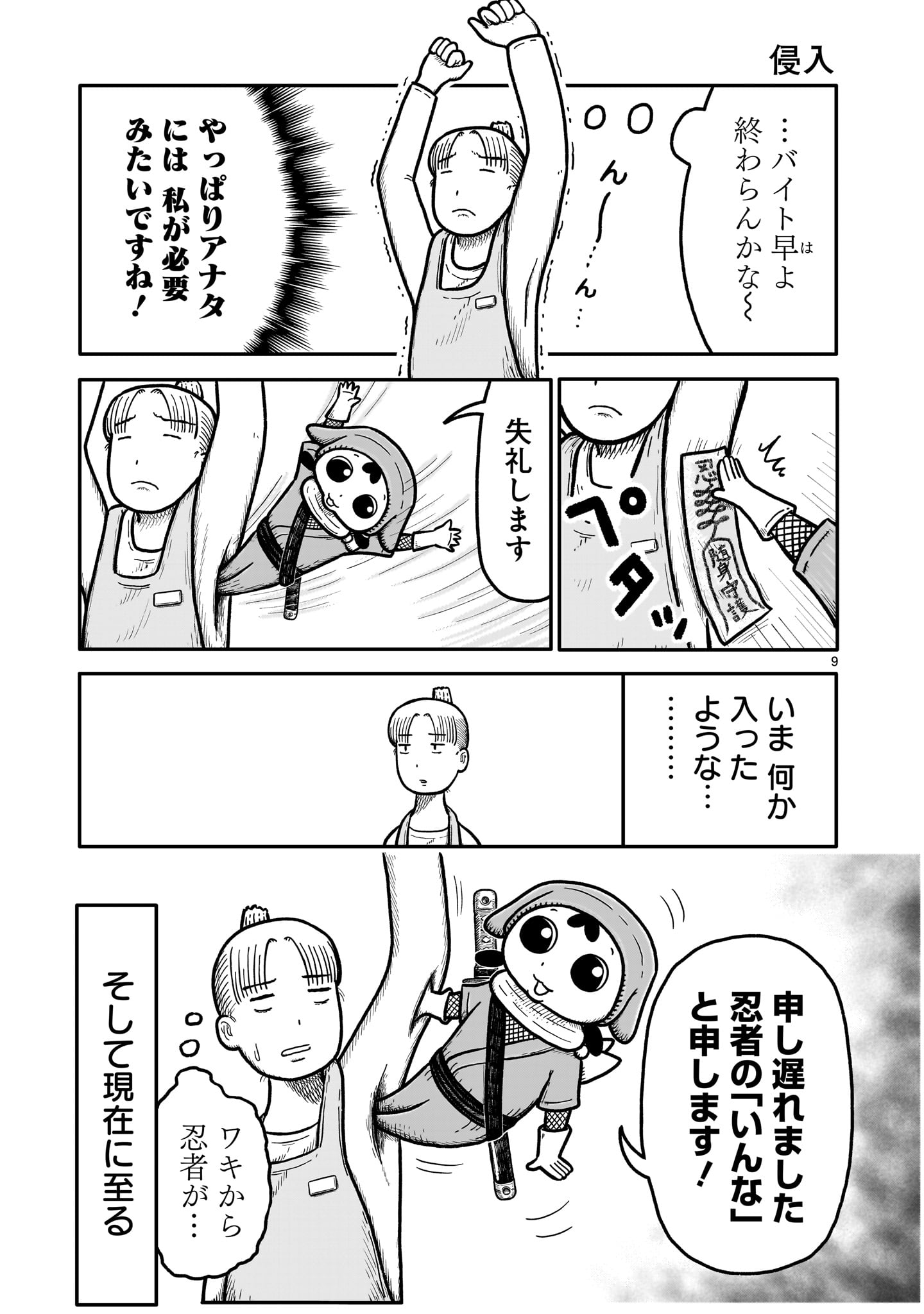 ホームセンターでアルバイトをしながら、漫画家を目指す「篠原さん」。人見知りが激しく接客も苦手。仕事の要領もべらぼうに悪い。そんな彼女を救うべく、現れたのは8歳のくのいち「いんな」だった!?