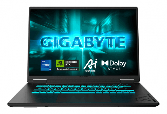 GIGABYTE独自の冷却技術WINDFORCEとして、74枚ブレードの薄型ファンをデュアルで搭載し、さらに2つの吸気、4つの排気エアチャネルを立体的に配置することで冷却効率を高めた3D VortXなどの新技術を採用しました。また、AIクーリング機能により、負荷が低いときは0dBの静音環境を実現します。ネットワーク機能としては、1Gbps有線接続を実現するギガビットLANチップを搭載するとともに、Intel WirelessモジュールによるWi-Fi 6E無線接続に対応し、安定したネットワーク接続を支援します。キーボードには、しっかりした打鍵フィードバックのある静音仕様の単色RGBバックライトキーボード(日本語配列)を採用しています。サウンド機能としては、Dolbyの最新3D空間オーディオ技術Dolby Atmosに対応し、没入感にすぐれたサラウンドオーディオ体験を実現します。