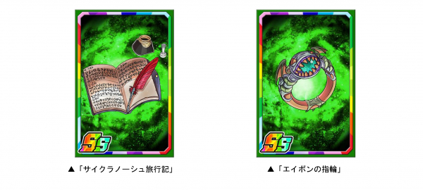 ダンジョンのボスを倒すと、まれに新たな限定子分カード「サイクラノーシュ旅行記」「エイボンの指輪」が手に入ります。限定子分カードは複数枚集めると進化ができ、子分スキルの効果が強力になります。
