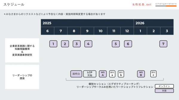 ・多様性ある参加者:一部プログラムは上場企業役員(性別問わず)も参加