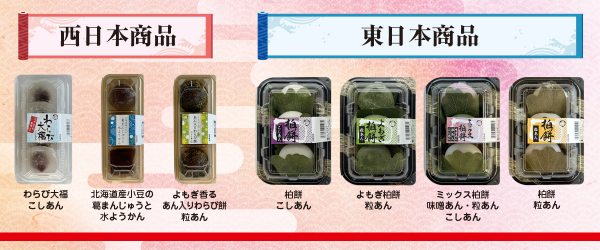 全国のスーパーマーケット様を中心に、皆様に『「ちょっと食べる」喜び』を毎日お届けしています。季節を感じられる美味しい和菓子を「毎日」楽しんでいただくため、徹底して「お得感」を感じる価格で和菓子をお届けすることをミッションに、設立48年の“もちのプロ”として全社を挙げて商品作りに取り組んでいます。食を通して皆さまに“ちょっと食べる喜び”を感じていただけましたら幸いです。