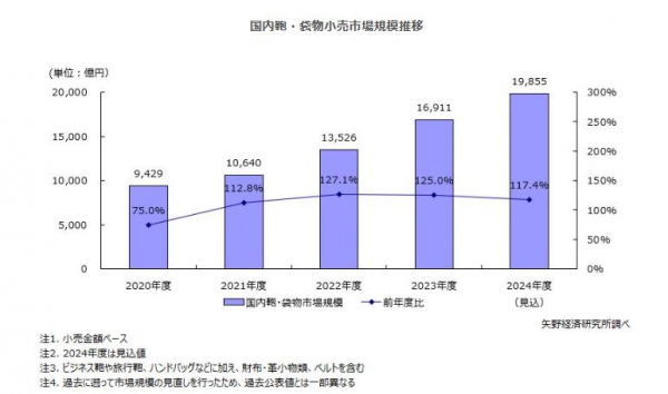株式会社矢野経済研究所(代表取締役社長:水越孝)は、国内の鞄・袋物市場を調査し、製品セグメント別の動向、参入企業動向、将来展望を明らかにした。