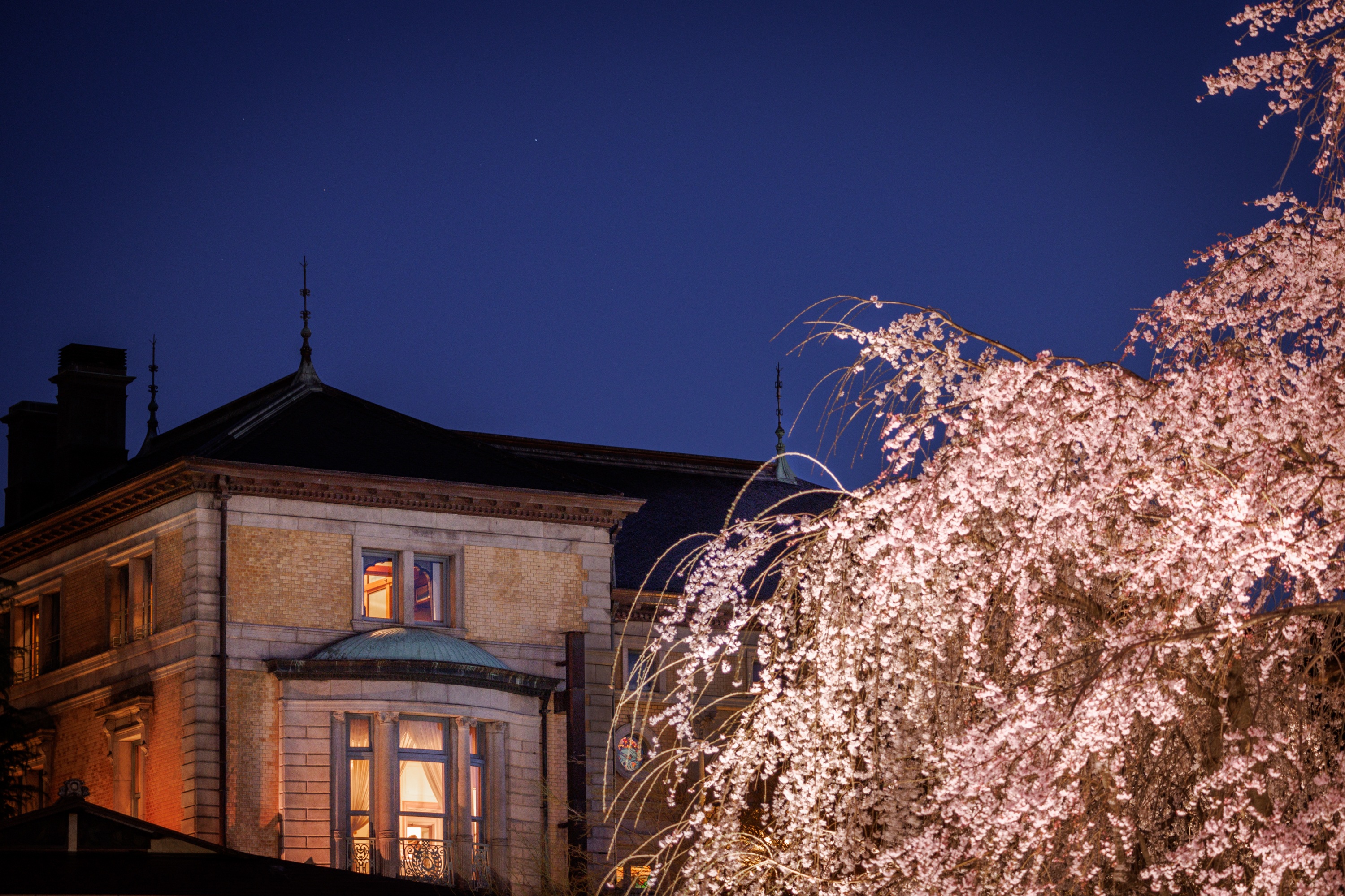 ホテル長楽館(京都市東山区円山町、総支配人:吉田 重人)は、一日一組限定の個室フレンチディナープラン「夜桜プライベートディナー」を2025年4月5日(土)まで開催中です。本プランの売上の一部は、円山公園の祇園枝垂桜の保全を目的として京都市建設局南部みどり管理事務所へ寄付されます。