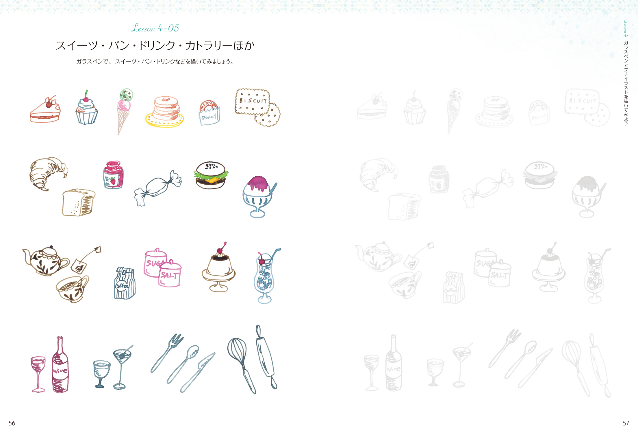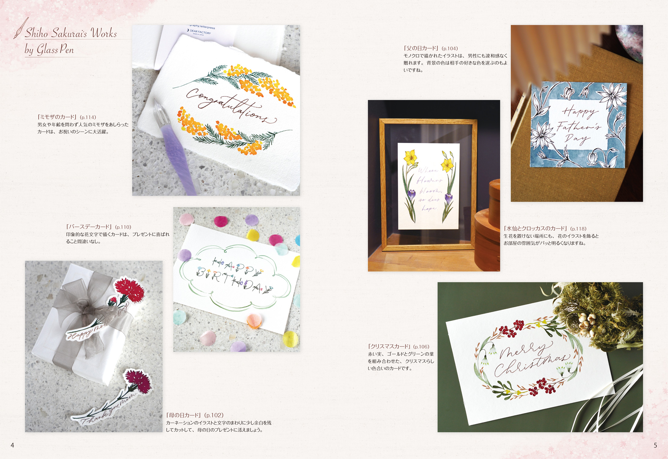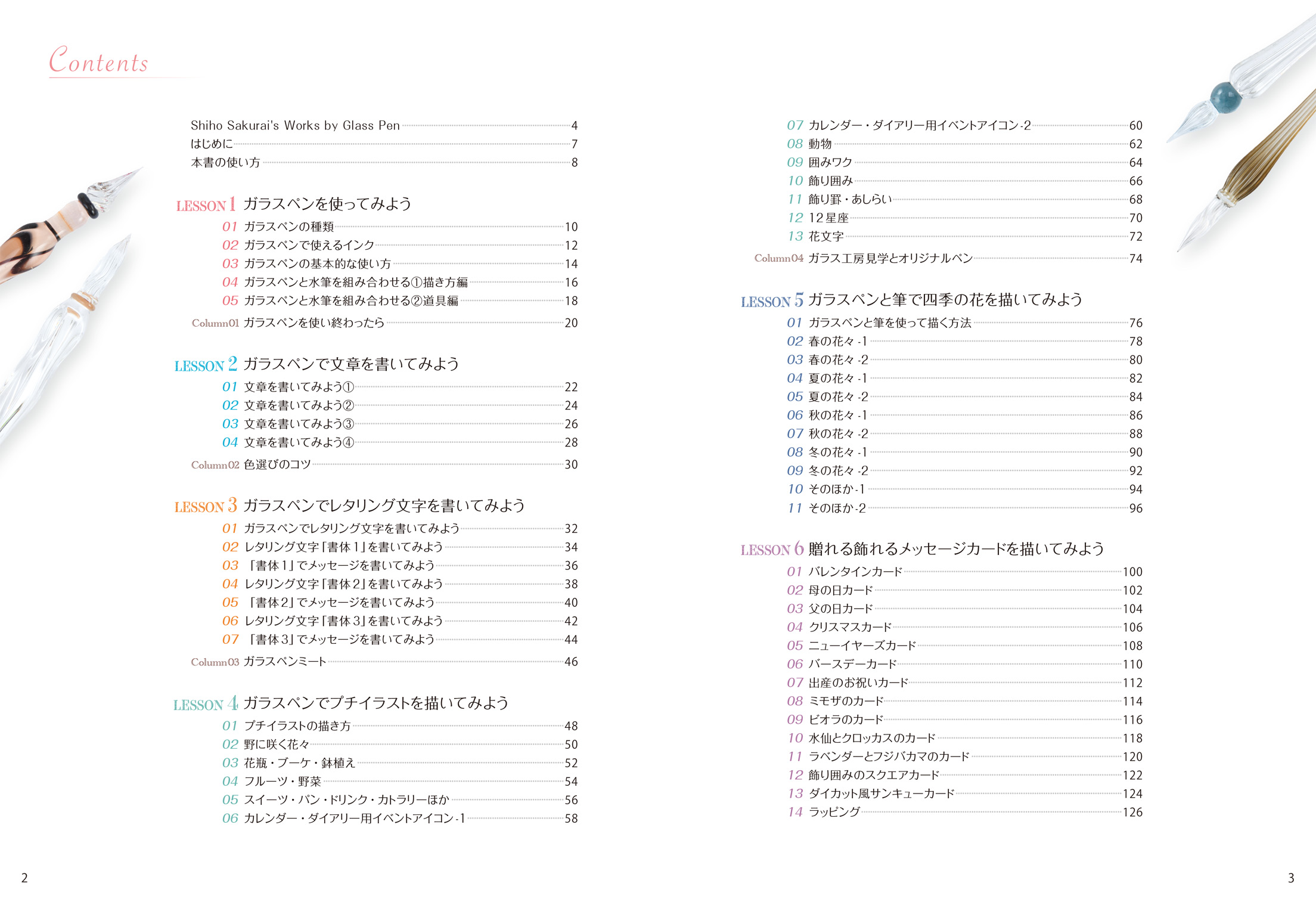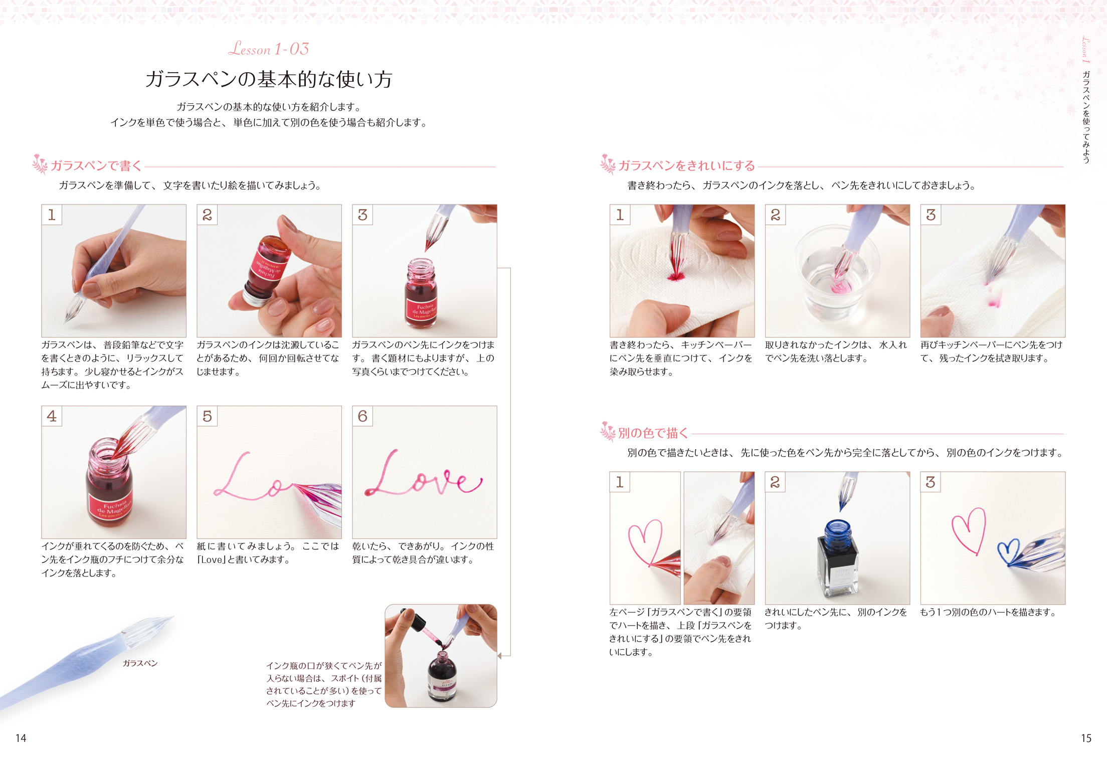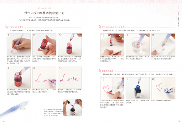 ガラスペンのことを少し敷居が高いと思っているかたもいらっしゃいますが、実際に使ってみると、意外と簡単に書けることが分かると思います。本書で練習すれば、ガラスペンの魅力や色とりどりのインクで絵や文字を書くことの楽しさを実感できます。