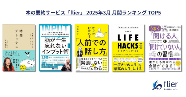 累計会員数123万人を突破した本の要約サービス「flier(フライヤー)」を運営する株式会社フライヤー(本社:東京都千代田区、代表取締役CEO 大賀康史)は、2025年3月のビジネス書月間ランキングを発表しました。