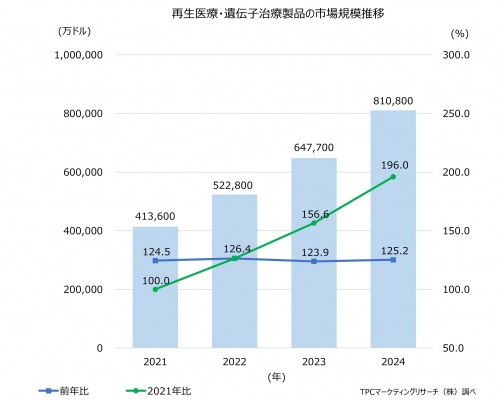 再生医療・遺伝子治療製品市場について調査を実施、その結果を発表した。