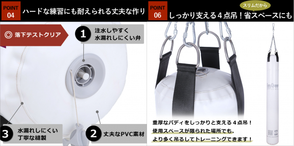 ●大きさや素材など、細部にまで扱いやすさ、耐久性にこだわったサンドバッグ