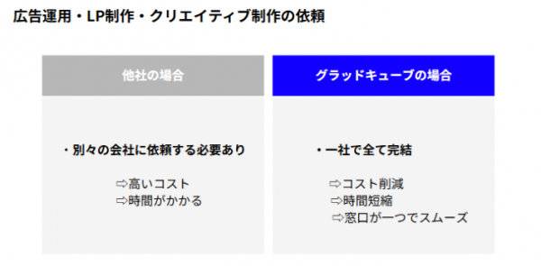 (1) LP 制作・改善、(2)クリエイティブ制作、(3)広告運用