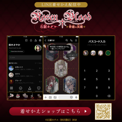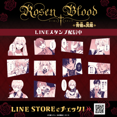 2022年「月刊プリンセス」(秋田書店)8月号にて連載完結した、石据カチル先生の作品『Rosen Blood~背徳の冥館~』の漫画原作のLINEスタンプとLINE着せかえがインクルーズより配信開始!是非、LINEを『Rosen Blood~背徳の冥館~』尽くしにしてトークをお楽しみください。