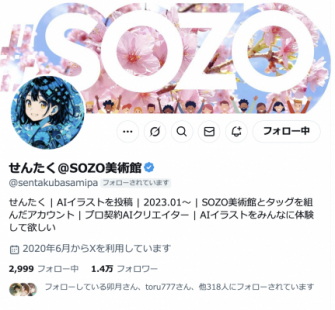 日本最大級のAIアートコミュニティ「#SOZO美術館」を運営する株式会社海馬(本社:東京都、代表取締役:北村勝利)は、SNS上で6万人以上のフォロワーを持つ人気AIイラストレーター“Sentaku”とのプロ契約を締結したことをお知らせいたします。