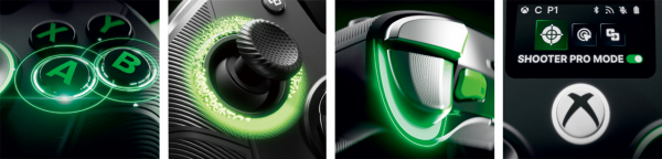 これらの設定は、コントローラー中央に取り付けられた LCD スクリーンで変更が可能です。カスタマイズ、マッピング、プログラミング、オーディオソースミキシングなど様々な設定を、PC アプリを介さず、コントローラー本体のみで、状況に応じて直感的に調整できます。