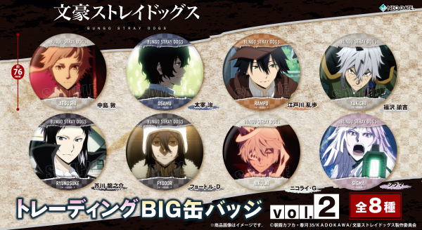 TVアニメ『文豪ストレイドッグス』より「トレーディングBIG缶バッジ vol.2」の発売が決定いたしました!