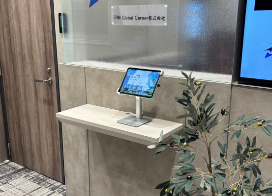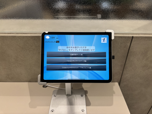 受付に設置されているタブレットと、事務所内の電話で音声通話が可能なことで来訪者との意思疎通がしやすいそうです。