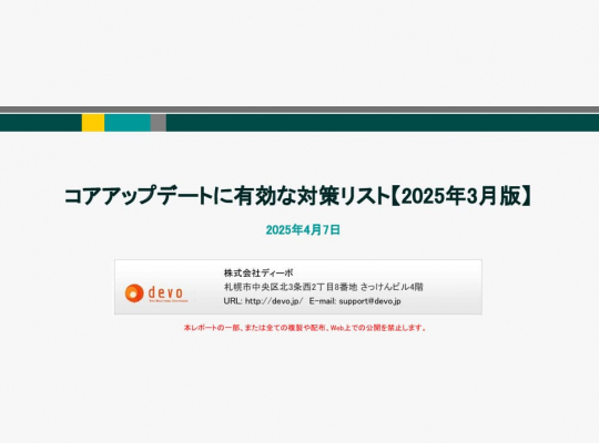 SEO対策サービスの開発・販売を行っている株式会社ディーボ(札幌市、代表取締役社長:藤沢 竜志、以下:ディーボ)は、2025年4月7日(月)にSEO資料「コアアップデートに有効な対策リスト 2025年3月版」を公開しました。