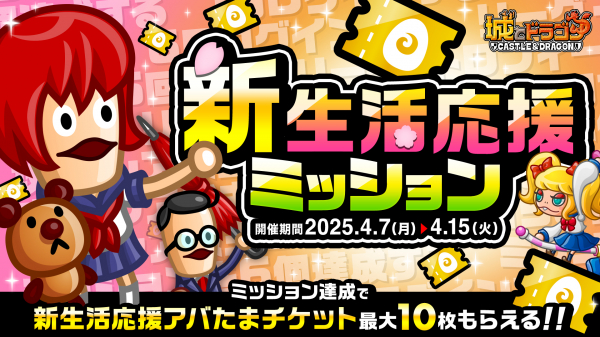 株式会社アソビズム(本社:東京都千代田区、代表取締役:大手智之)は、App Store・Google Playにて好評配信中の『城とドラゴン』で、「新生活応援ミッション」を2025年4月7日(月)19:00より開催いたします。
