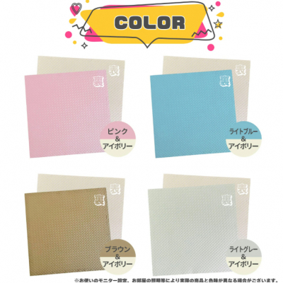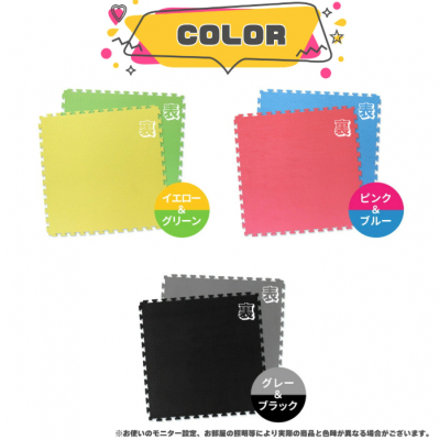 かわいくおしゃれなカラーバリエーションを展開。表面裏面で2色のリバーシブル仕様となっており、自由な組み合わせで設置可能。子ども部屋はもちろん、ジムやトレーニングルーム、お座敷など、様々な場所にマッチします。