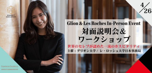 スイス式ホスピタリティ教育を世界4か国で提供するソメット・エデュケーションの日本事務局(所在地:東京都港区、以下グリオン/レ・ロッシュ日本事務局、運営:iaeグローバルジャパン株式会社)は、2025年4月26日(土)に海外のホスピタリティ/ホテル大学へ進学を希望する学生、社会人、保護者の方を対象に「ホスピタリティ/ホテル大学留学説明会」を東京にて開催する。