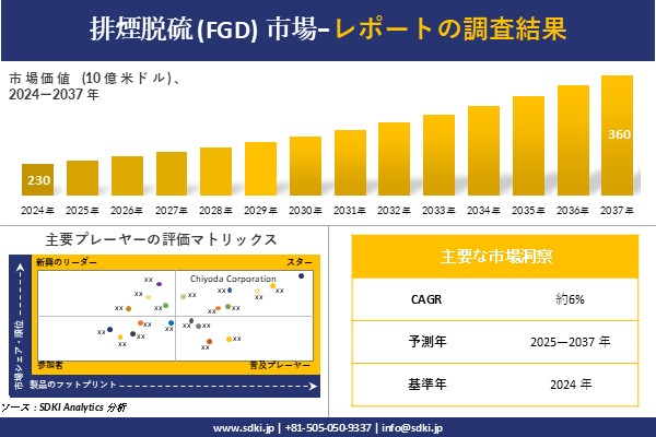 排煙脱硫 (FGD)に関する詳細な市場調査報告書は以下のリンクから入手できます:https://www.sdki.jp/reports/flue-gas-desulfurization-fgd-market/53656