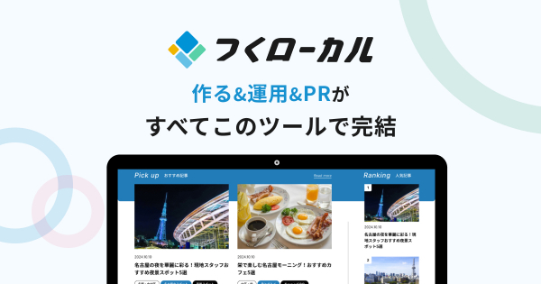 「つくローカル」は、地域に寄り添ったWebメディア(オウンドメディア)の運営を支援するサービスです。アイデアクラウドがこれまで制作会社として培ってきた知識を活かし、Webメディアの仕組みやノウハウを提供します。