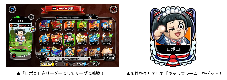 コラボ限定キャラ「ロボコ」をリーダーにしてリーグに挑む「リーダー腕利きGP」を開催いたします。バトルに勝利してより多くの「キャラフレP」を獲得したランキング上位者や条件を達成した方には、コラボ限定「キャラフレーム」が贈られます。