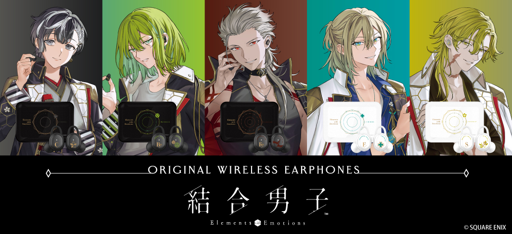 『結合男子』は、水素(H)や酸素(O)といった化学元素の力を宿す「志献官(しけんかん)」たちとともに、50日後の世界消失に立ち向かう友情結合シミュレーションアドベンチャーです。コラボレーションワイヤレスイヤホンには、5人の「志献官(しけんかん)」録り下ろしボイスが搭載されます。