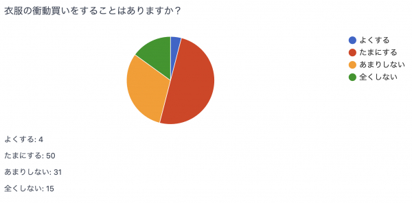 アンケート結果からは、セールなどによる“お得感”や、デザインへの好みといった感覚的な魅力が衝動買いの主な動機となっていることが浮き彫りになりました。特に、価格や見た目に対する直感的な反応が、購買行動を強く後押ししている様子がうかがえます。