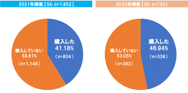 購入していない理由として最も多かったのは「親族・知人にもらった(もらう)から」であり、2021年は31.27%、2025年は35.07%と、いずれも3割を占めた。