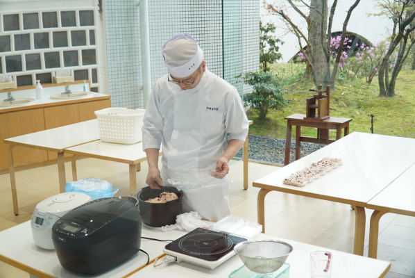 前半は、有限会社引網香月堂 代表取締役 引網康博先生に、炊飯器で簡単に炊けるお赤飯の作り方を教えていただきました。